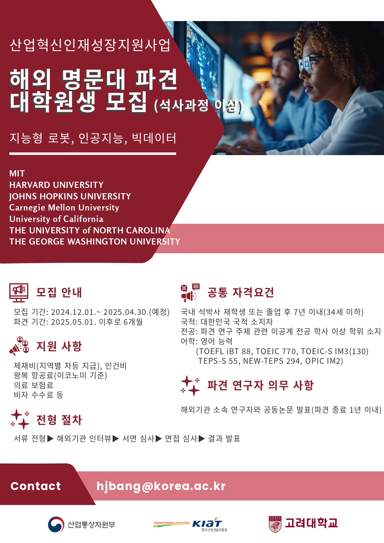| 제목 | 2025 산업혁신인재성장지원사업(산업통상자원부/ KIAT) 해외 명문대 파견 대학원생 모집 |